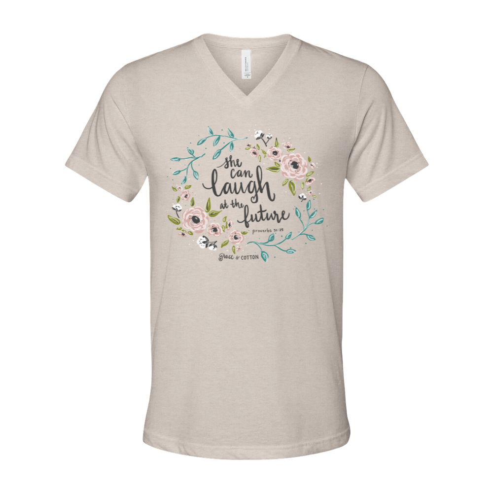 "She Can Laugh at the Days to Come" -VNeck – Grace and Cotton
