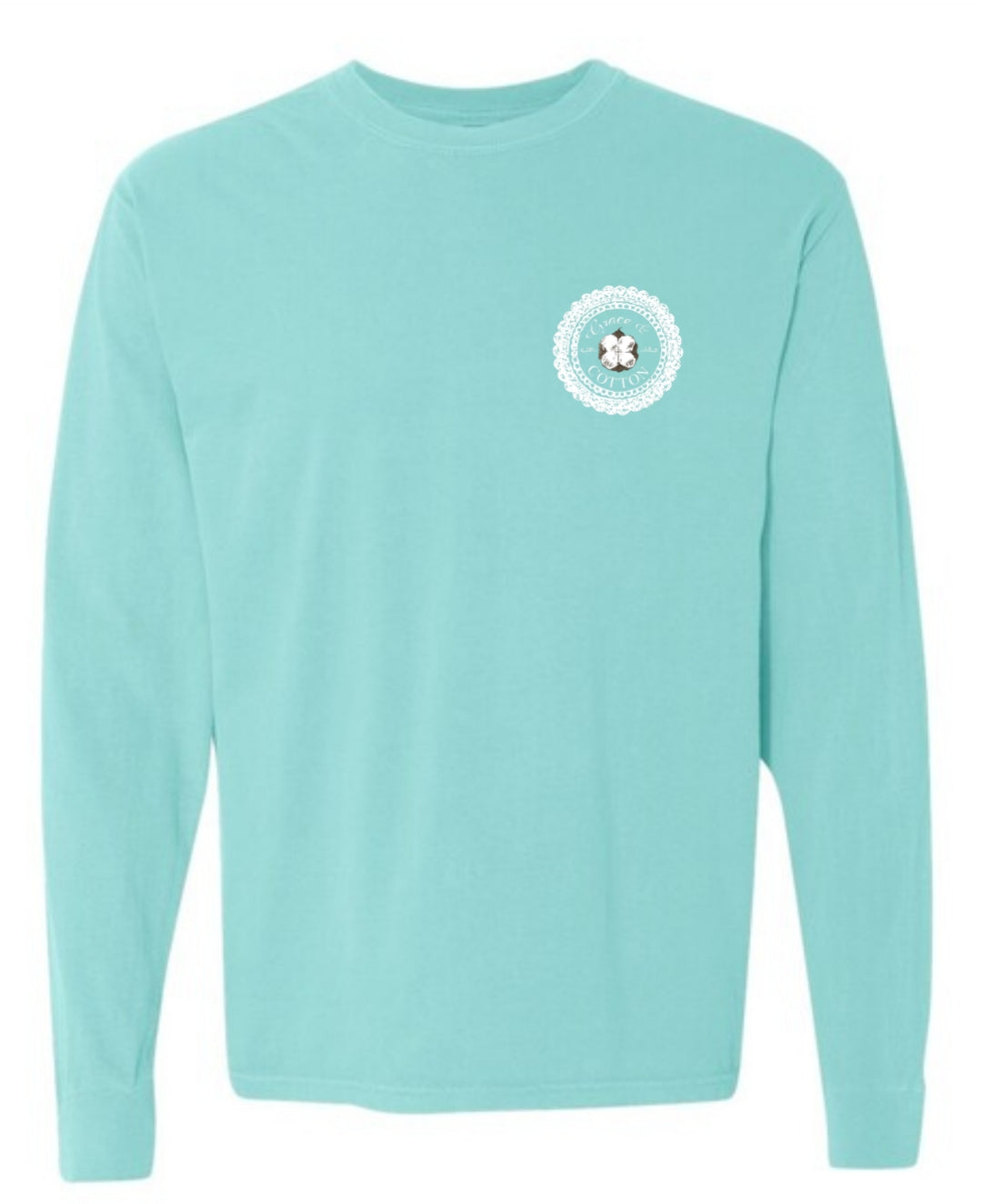 I love love love these long sleeves. They are 100% American grown garment dyed cotton. Shirts are unisex and run true to size.