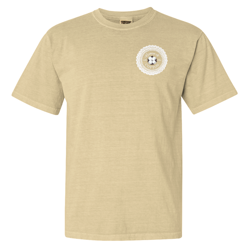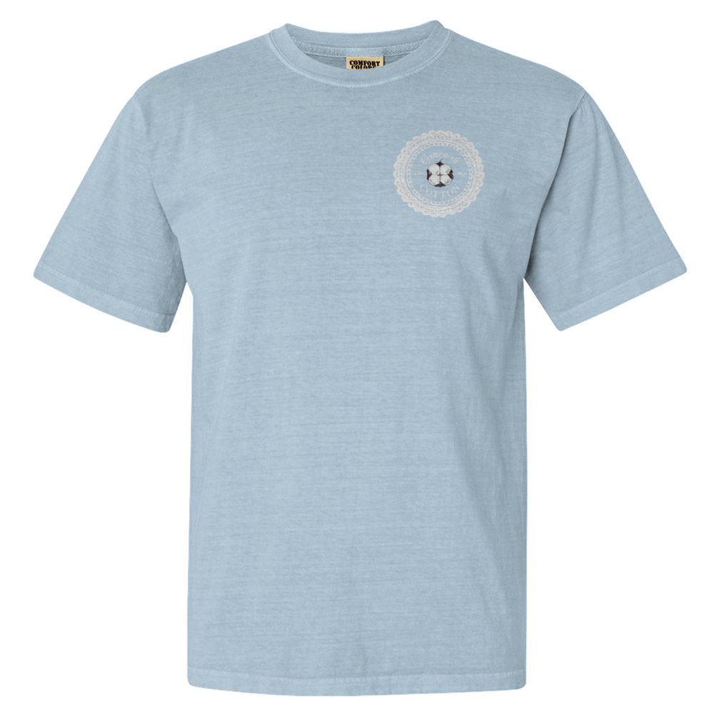 Garment dyed for that lived in feel and almost no shrinkage at home, soft ring-spun cotton fabric with 100% cotton threads, unisex relaxed fit, made with OEKO-TEX certified low-impact dyes.